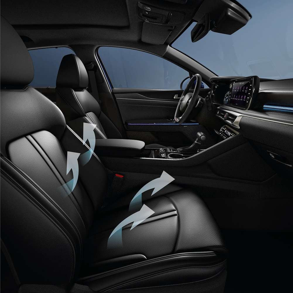 ghế lái và ghế hành khách trước của Kia K5 còn được trang bị tính năng sưởi, làm mát ghế ngồi, giúp người lái và bạn đồng hành cảm thấy thoải mái hơn trong mọi điều kiện thời tiết.